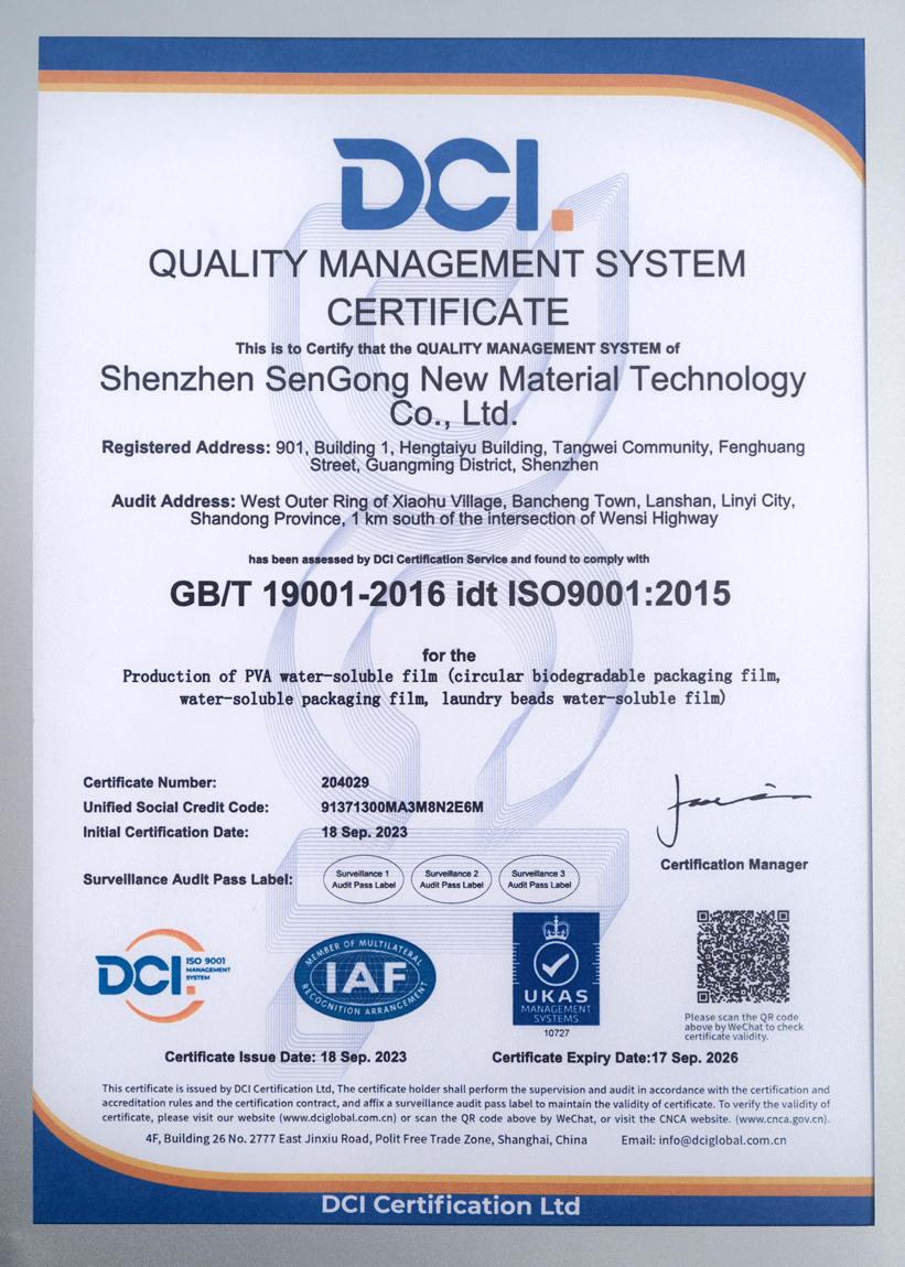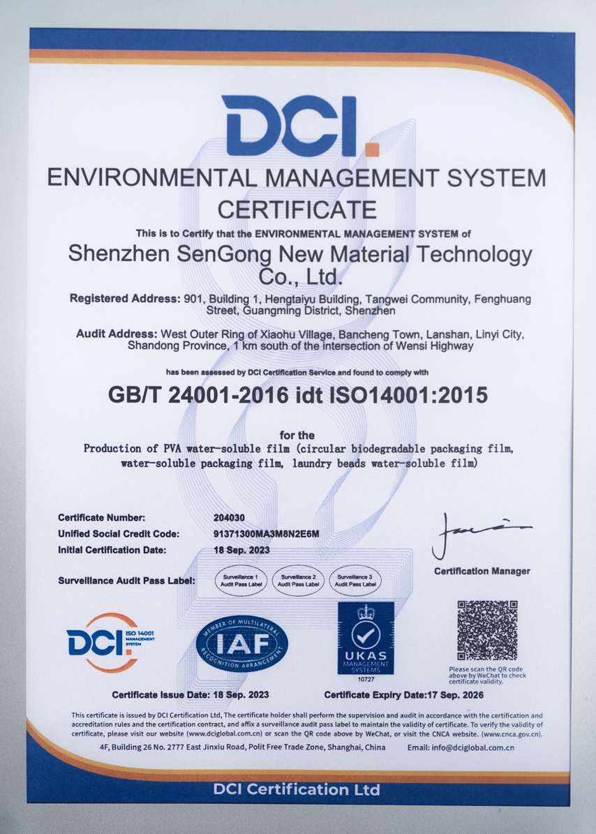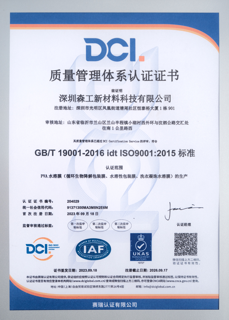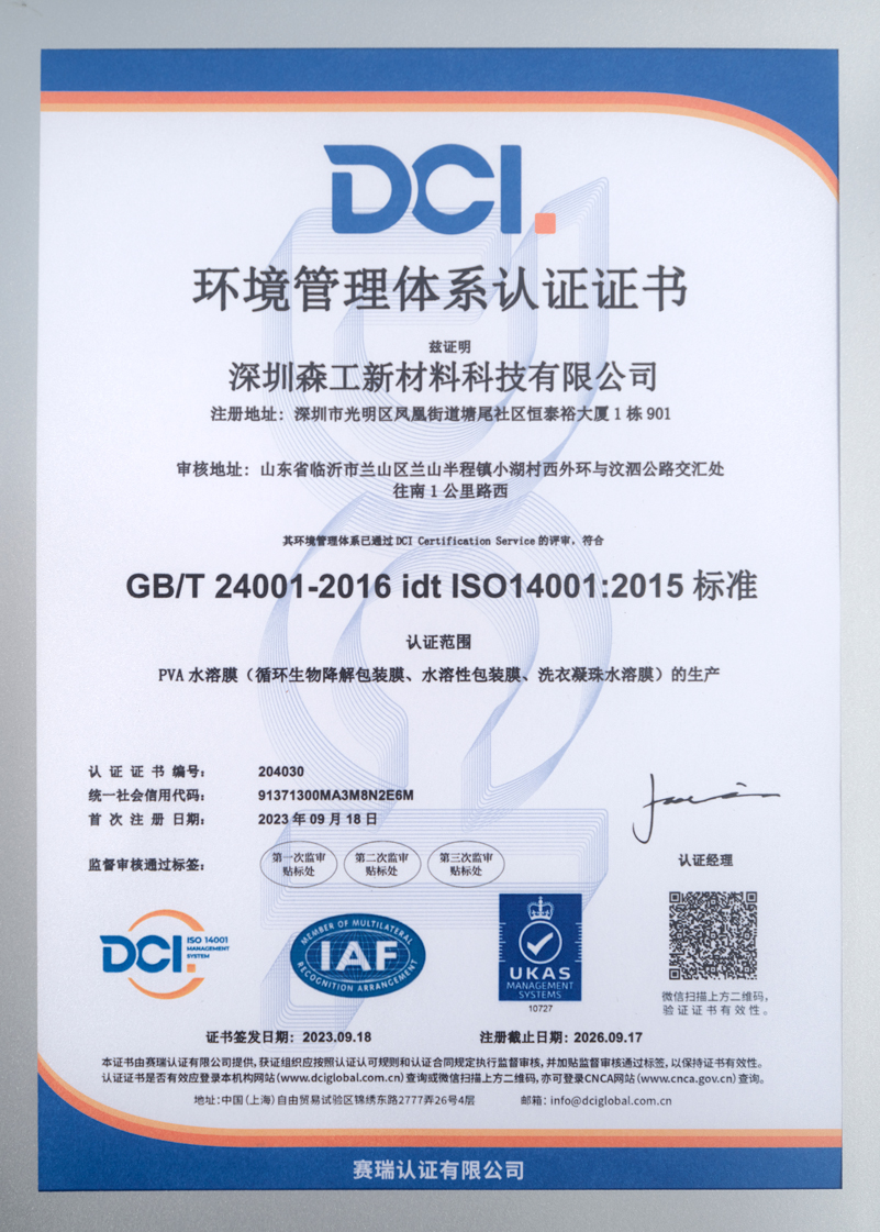 本产品采用的PVA原料源自母公司森工集团——全球顶尖水溶性生物降解PVA薄膜制造商,长期为国内外一线品牌提供核心材料支持。